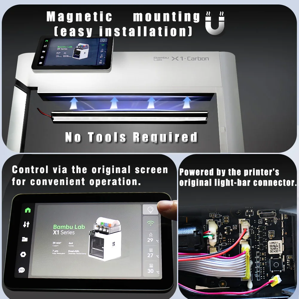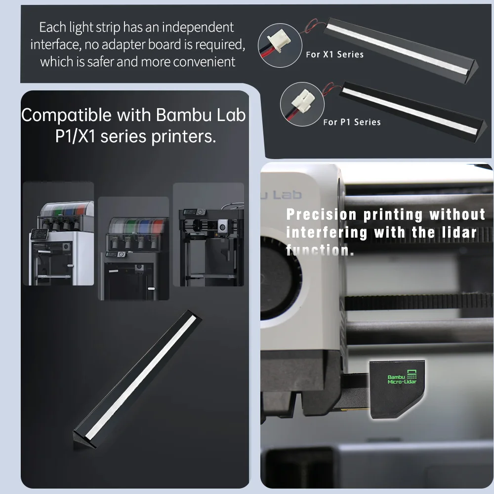For Bambu Lab LED Light Bar Upgrade Kit High Brightness Lighting Magnetic Install for Bambulab P1/X1 3D printer Parts